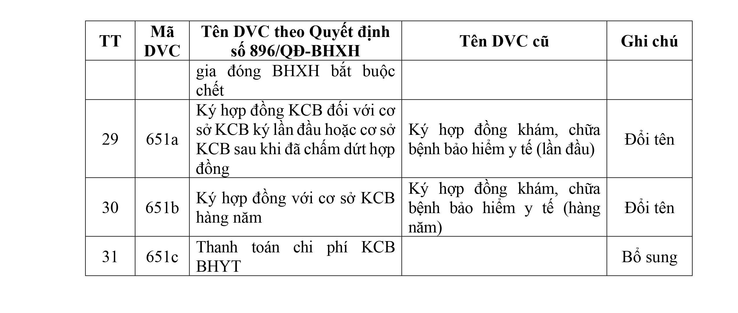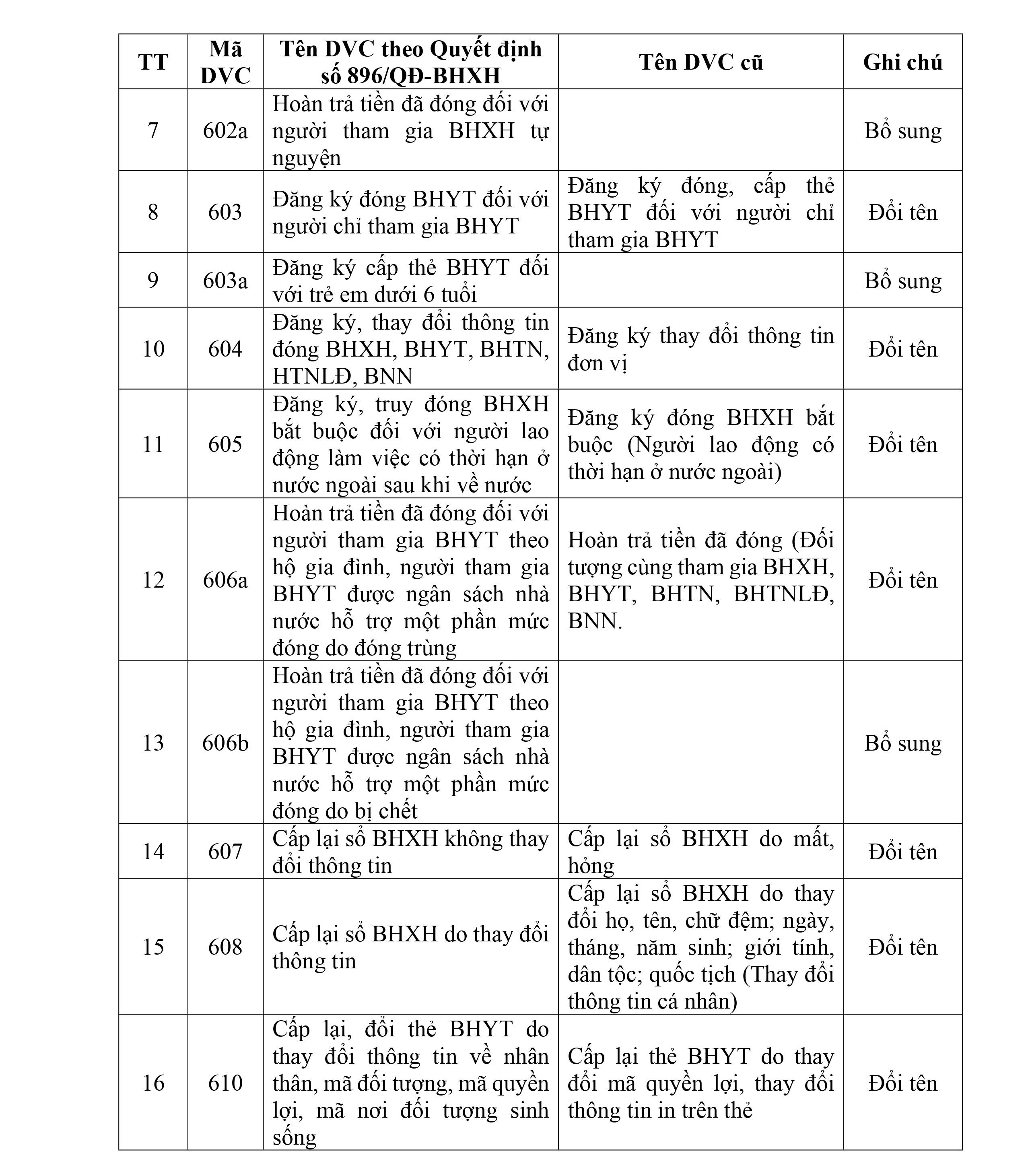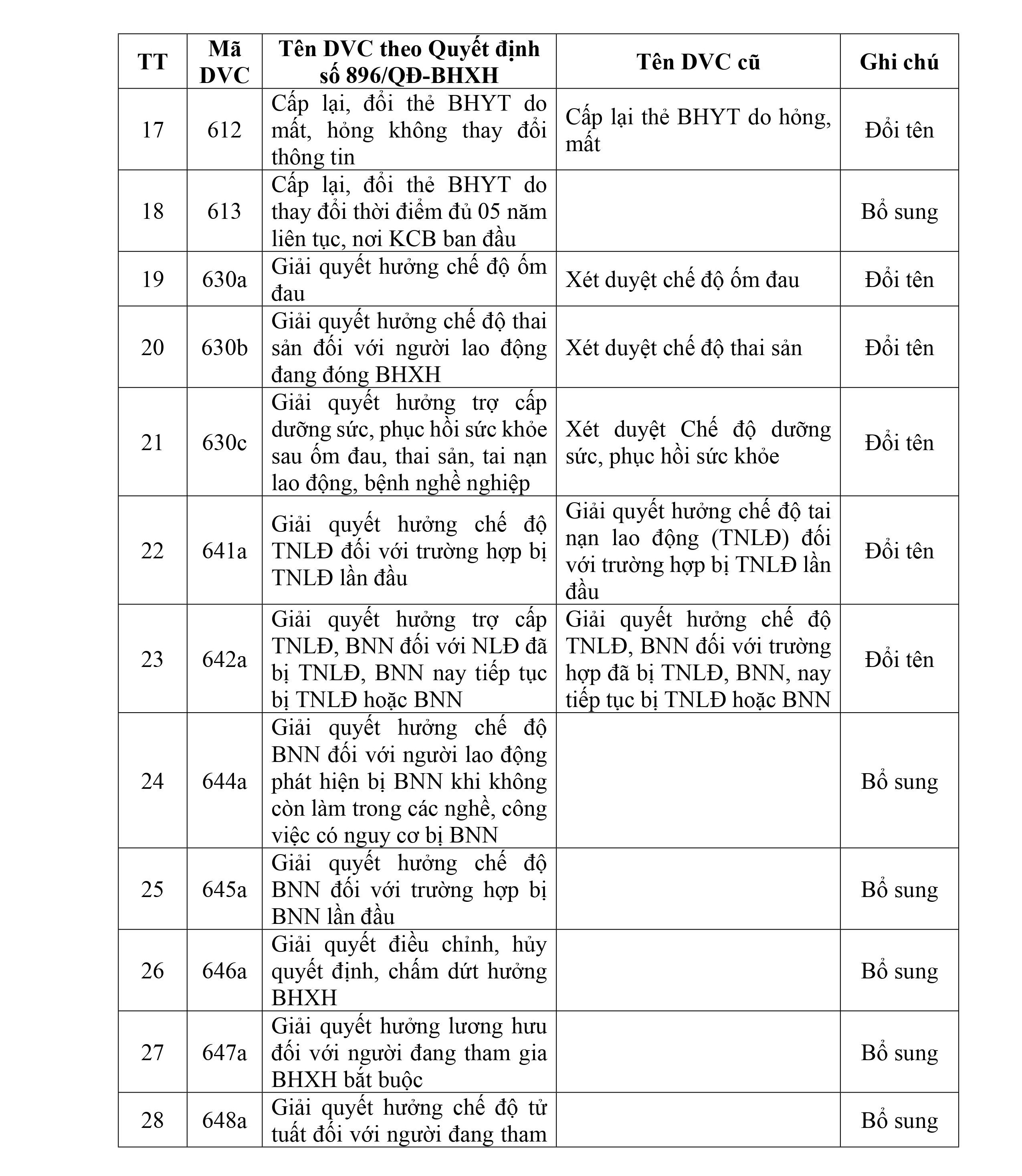 CẬP NHẬT THEO QUYẾT ĐỊNH SỐ 896/QĐ-BHXH CỦA BẢO HIỂM XÃ HỘI