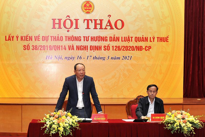 Sáng ngày 16/3, tại trụ sở cơ quan Tổng cục Thuế đã diễn ra buổi Hội thảo lấy ý kiến dự thảo Thông tư hướng dẫn Luật Quản lý thuế số 38/2019/QH14 và Nghị định 126/2020/NĐ-CP. Hội thảo được tổ chức bằng hình thức trực tuyến với 63 điểm cầu tại các Cục Thuế địa phương. Phó Tổng cục trưởng Tổng cục Thuế Vũ Xuân Bách chủ trì buổi hội thảo.