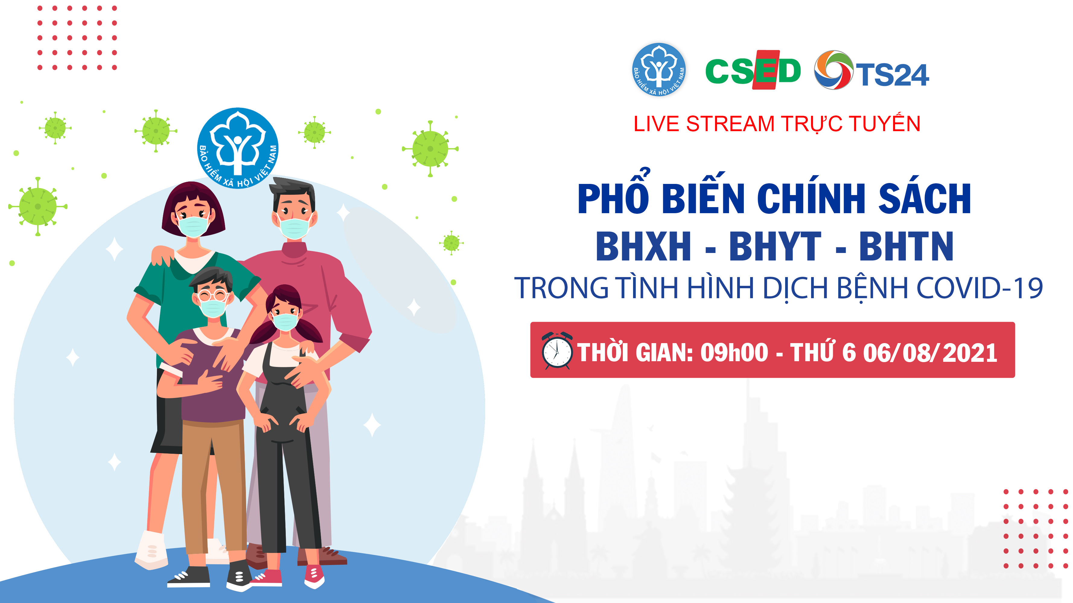 Bảo hiểm xã hội Tp.Hồ Chí Minh phối hợp cùng Công ty CP TS24 và Trung tâm hỗ trợ và phát triển Doanh ghiệp (CSED) tổ chức buổi livestream trực tuyến “Hướng dẫn và giải đáp chính sách BHXH, BHTN, BHYT trong tình hình dịch bệnh Covid-19”