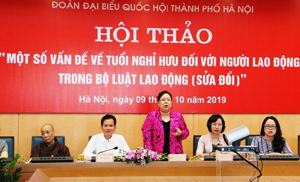 Sáng 9/10, Đoàn Đại biểu Quốc hội thành phố Hà Nội tổ chức hội thảo “Một số vấn đề về tuổi nghỉ hưu đối với người lao động trong Bộ luật Lao động (sửa đổi)”. Phó Bí thư Thành ủy, Chủ tịch HĐND TP, Phó Trưởng đoàn Thường trực Đoàn ĐBQH TP Hà Nội Nguyễn Thị Bích Ngọc chủ trì hội thảo.