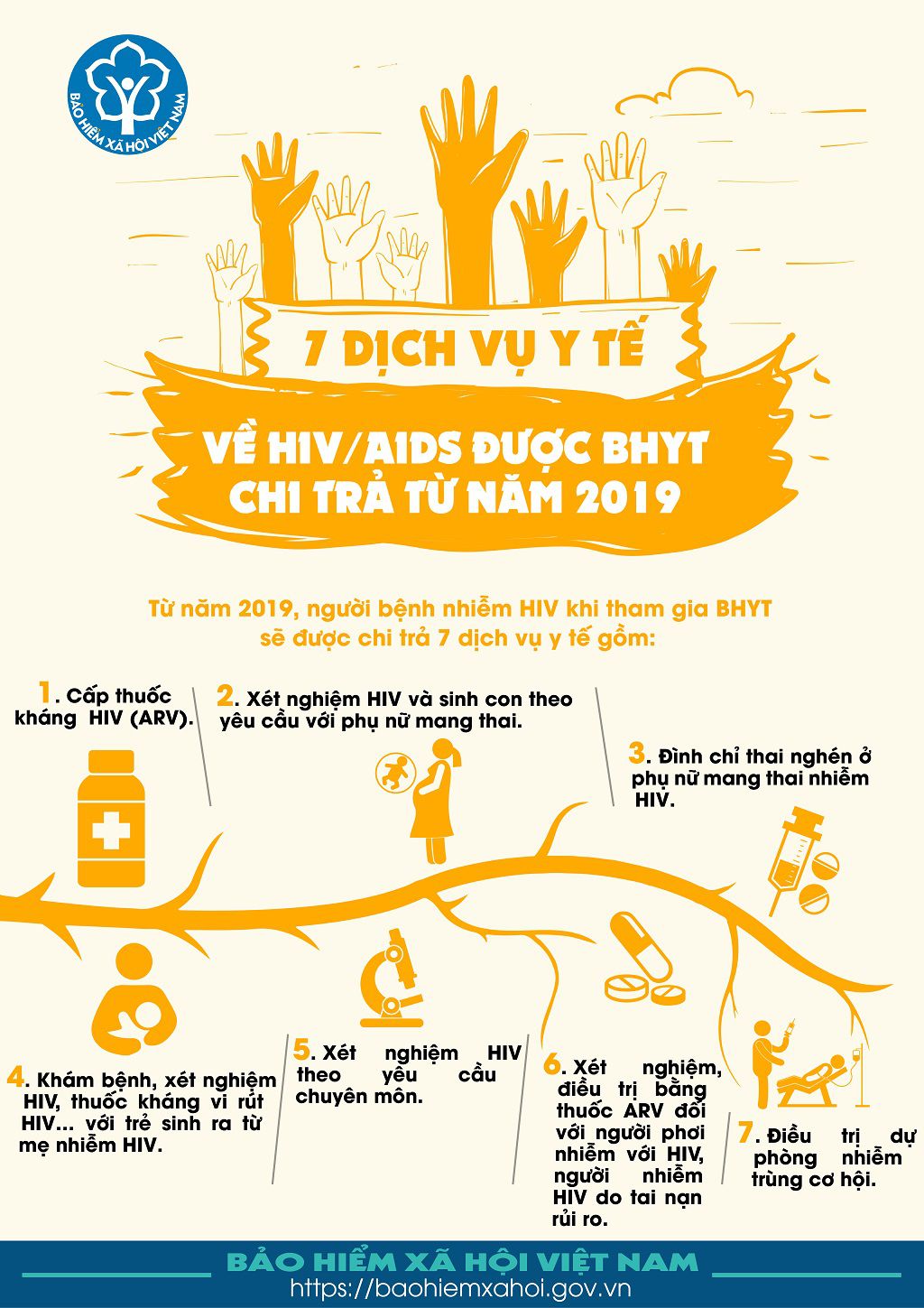[Infographic] 7 dịch vụ y tế về HIV/AIDS được BHYT chi trả từ năm 2019