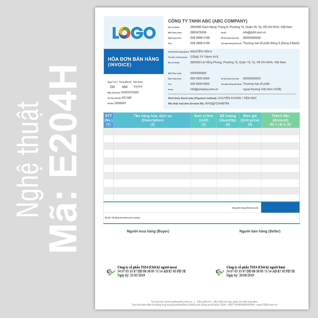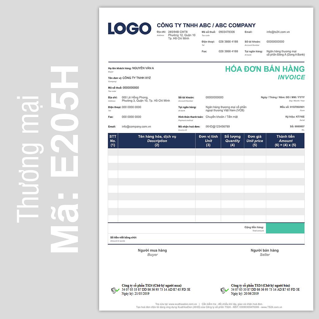 Lưu ý: ký hiệu V trước tên mã là mẫu tiếng Việt; ký hiệu E là mẫu song ngữ Việt - Anh.