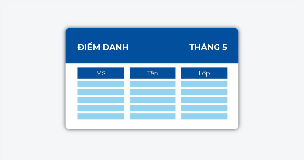 Tạo lớp điểm danh. Tạo danh sách điểm danh. Tự động thống kê sau khi điểm danh theo: khối, lớp, từng học viên….