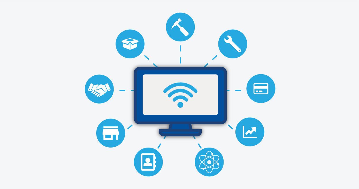 Liên hệ - CRM - Kho - Bán hàng - Mua hàng - Bảo hành - Sản xuất - Bảo trì - Điểm bán lẻ.