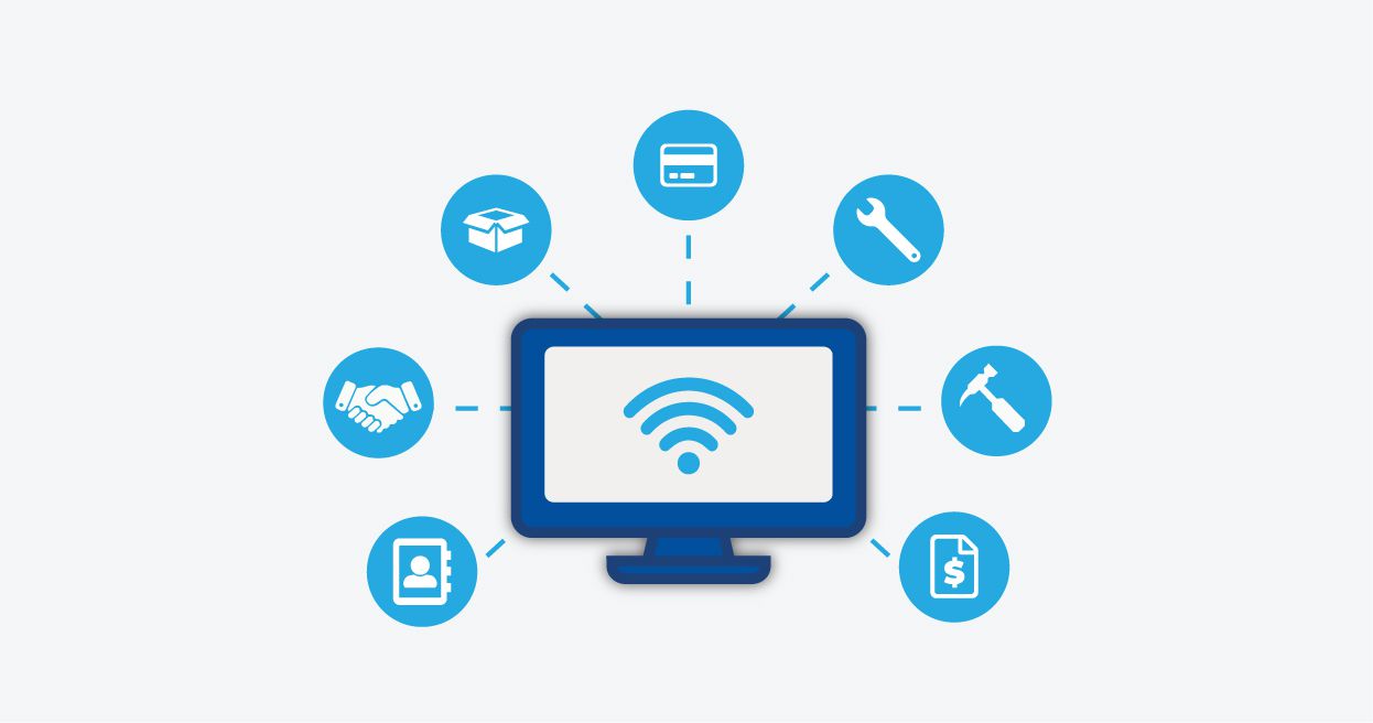 Liên hệ - CRM - Kho - Mua hàng - Bảo hành - Bảo trì - Kế toán.